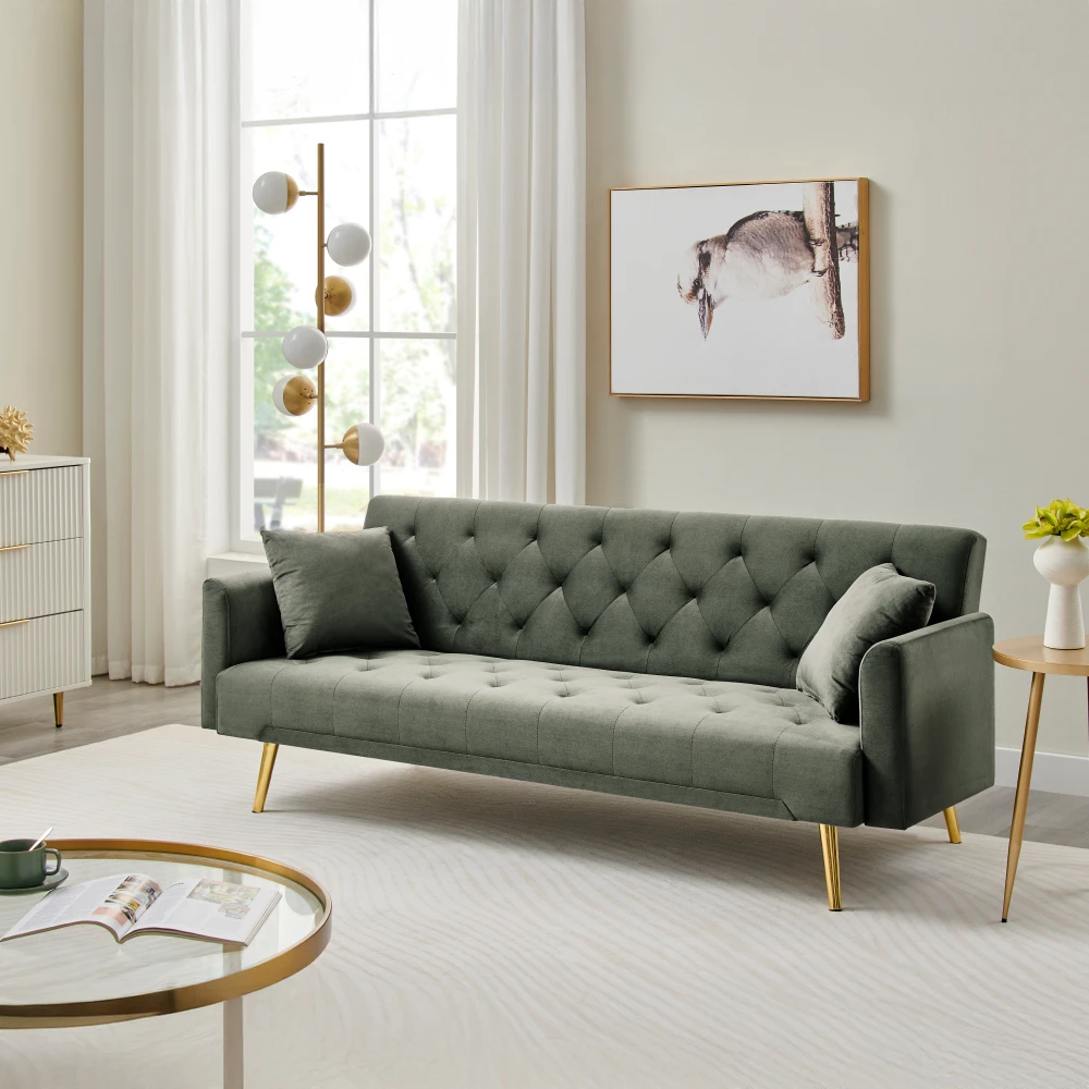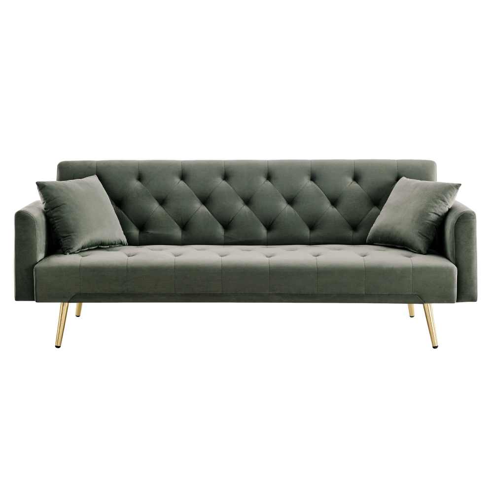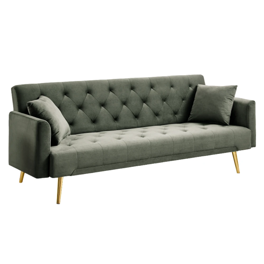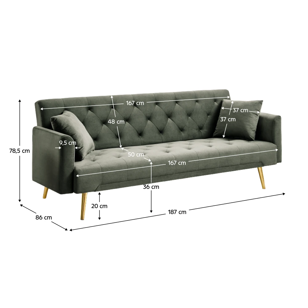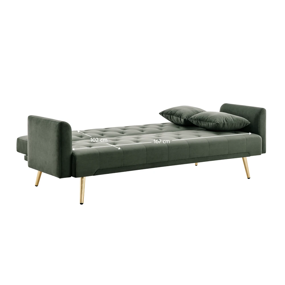 Rozkládací pohovka ve velvetu – tmavě zelená se zlatými detaily