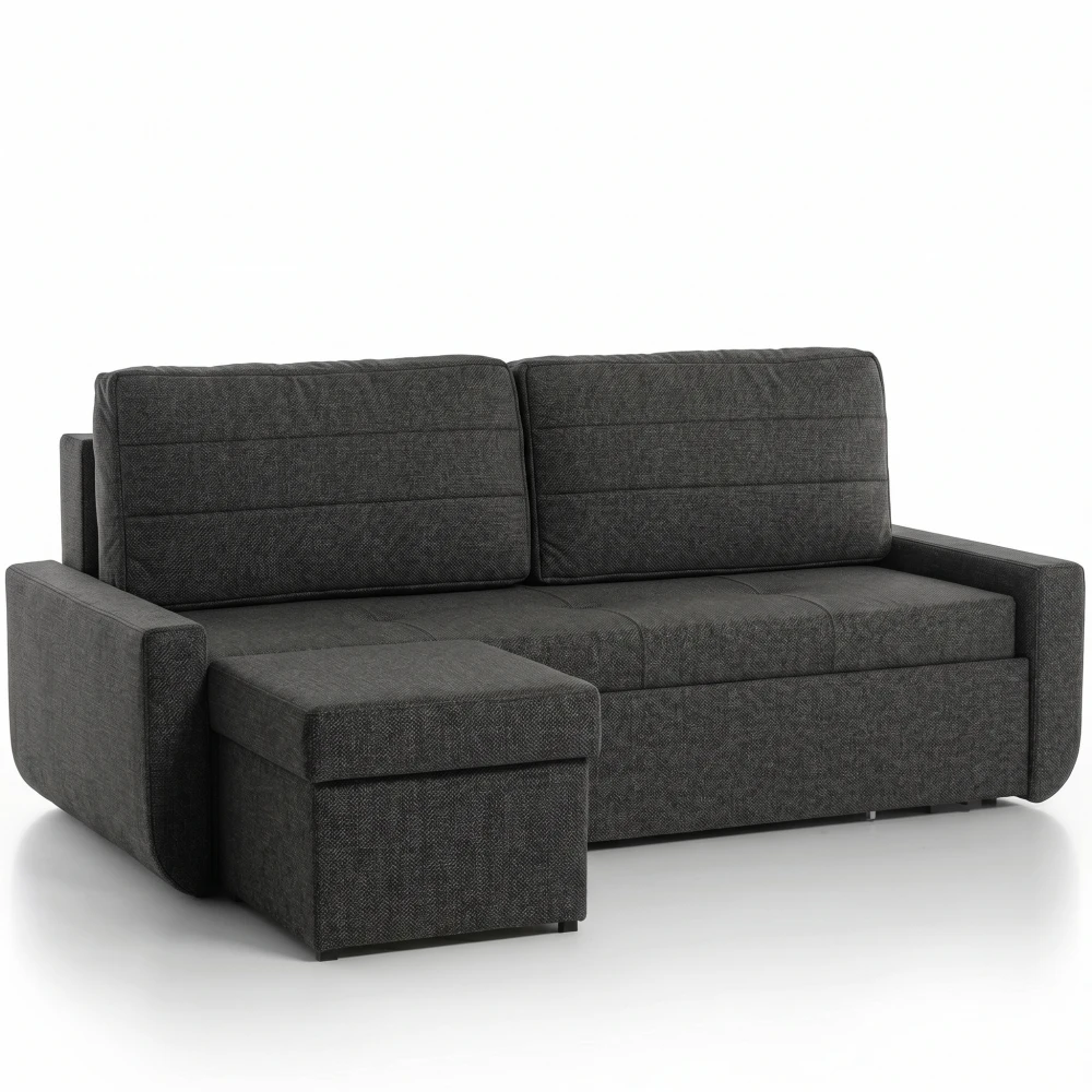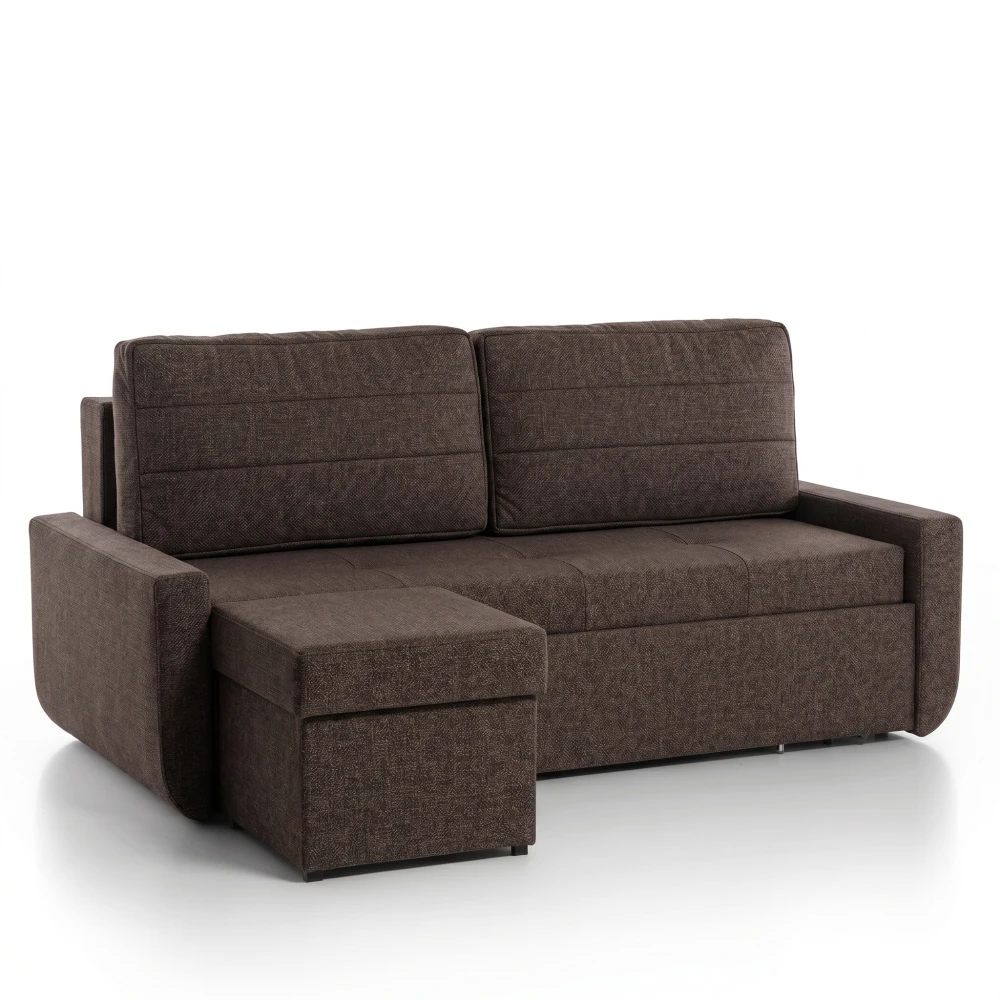 Součástí pohovky je praktický taburet, který můžete snadno připojit z levé nebo pravé strany podle dispozice místnosti. Díky otočným plastovým úchytům je připevnění i odepnutí velmi rychlé a intuitivní. Taburet poslouží jako prodloužení sedací plochy pro ještě větší komfort při odpočinku, ale také jako další úložný prostor – společně s úložným prostorem přímo v pohovce tak získáte dostatek místa na lůžkoviny, polštáře, deky nebo sezónní textilie. Delta 2 tak maximálně šetří místo a zároveň působí moderně a útulně, což oceníte zejména v menších bytech, studentských pokojích či garsonkách.