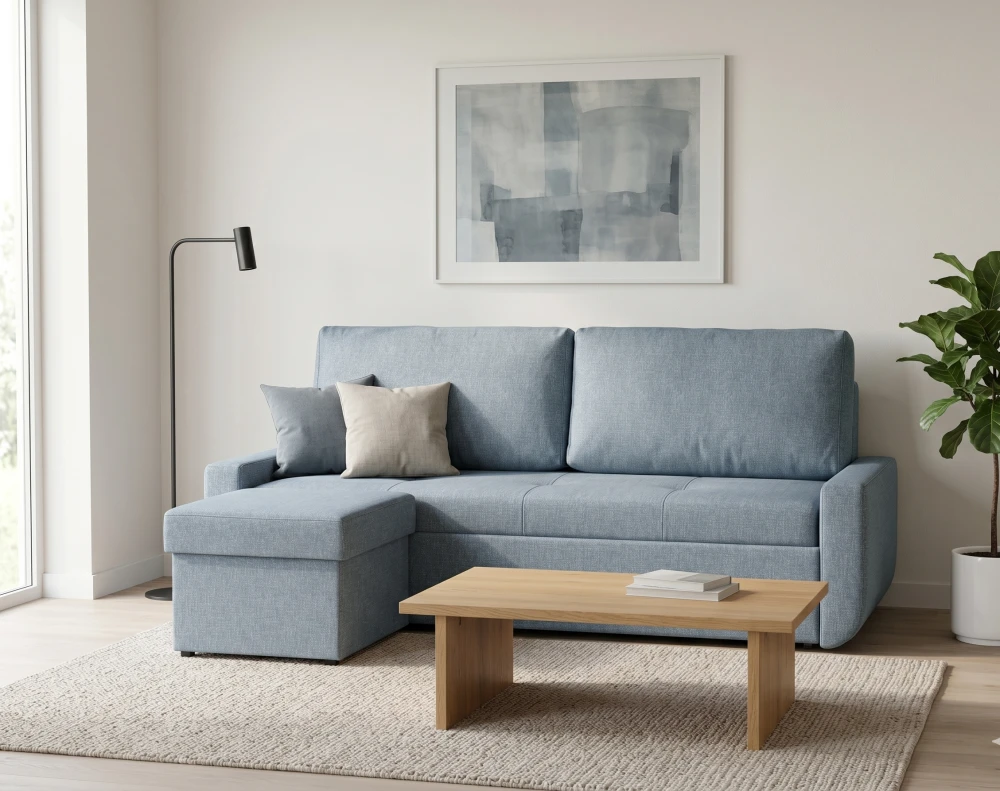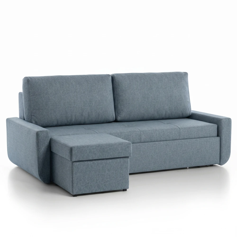 Součástí pohovky je praktický taburet, který můžete snadno připojit z levé nebo pravé strany. Rozšíří sedací i spací plochu a zároveň nabízí velký úložný prostor – ideální pro ložní prádlo, deky nebo sezónní textilie. Další úložný prostor je ukrytý přímo v pohovce, což oceníte zejména v menších interiérech.