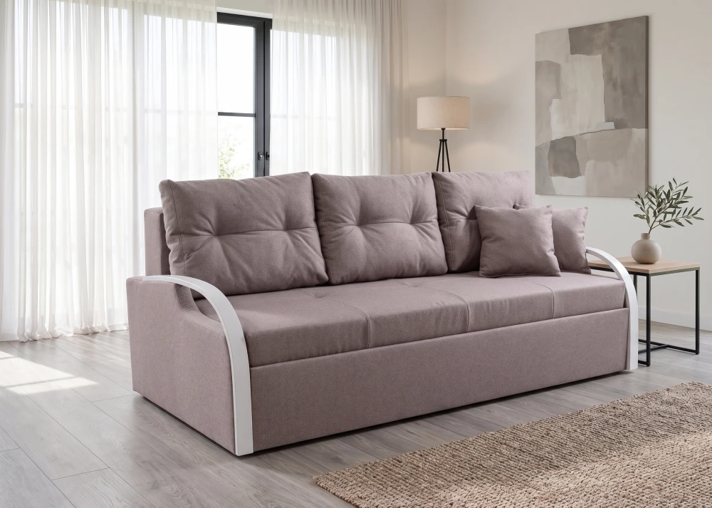 Součástí pohovky jsou kvalitní oboustranné matrace – jedna strana je potažena dekorativní potahovou látkou, druhá prodyšnou bílou matracovou tkaninou. Tato kombinace zajistí pohodlný spánek, správnou oporu těla a dlouhou životnost matrace. Rozložení pohovky je jednoduché, rychlé a doplněné o otočení matrace, což Vám umožní vytvořit plnohodnotnou postel během několika vteřin.