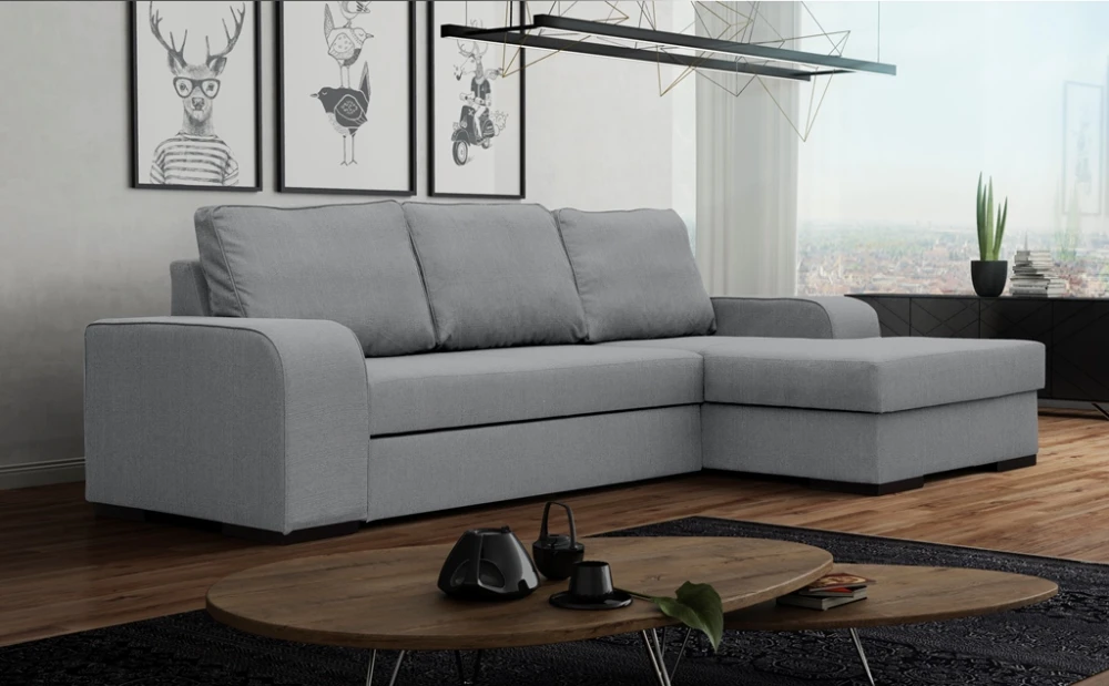 Sedací souprava Frogo v sobě spojuje 2 důležité prvky, které nesmí chybět žádné sedací soupravě. Jsou to pohodlí a praktičnost. Praktickou stránkou této sedací soupravy je možnost rozložení pro příležitostné přespání návštěvy a nepostradatelný úložný prostor, který využijete např. na lůžkoviny. Výplň sedáků tvoří kombinace pružin s kvalitní HR pěnou. Toto spojení zaručuje pohodlí při odpočinku, či posezení s rodinou nebo přáteli. Sedací souprava je potažena kvalitní čalounickou látkou. Záda sedací soupravy jsou začalouněná, takže ji můžete umístit i do prostoru. Vzorek látky, ve které bude sedací souprava dodána, je vyobrazen v doplňkových fotografiích. Sedací soupravu nabízíme v levém i pravém provedení a v několika trendy barvách. Vyobrazené doplňky a dekorace nejsou v ceně.