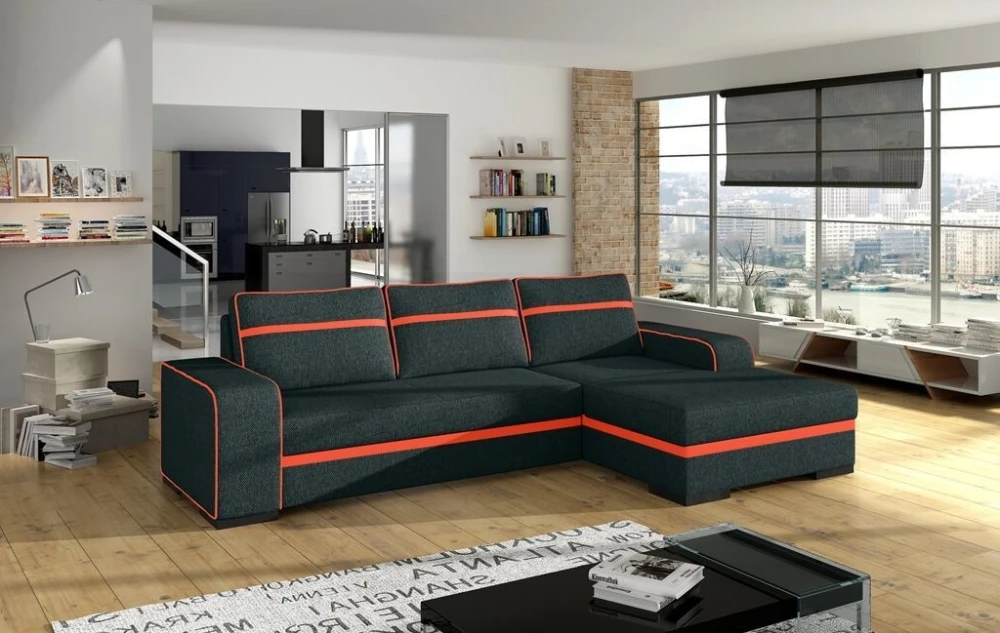 Elegantní rohová sedací souprava Funny je vhodná do každého interiéru. Umístit ji můžete ke stěně, nebo do prostoru. Sedací souprava je rozkládací a má také praktický úložný prostor. Jednoduchým rozložením vznikne dostatečně velké lůžko vhodné k příležitostnému spaní. Výplň sedáku tvoří pružiny faliste s kvalitní PUR pěnou. Tato kombinace zajistí pohodlné sezení. Sedací souprava je potažena velmi oblíbenou kvalitní látkou Inari. Zajímavým prvkem je proužek v kontrastní barvě, lemující sedací soupravu i polštáře. Tuto sedačku nabízíme v několika barevných variantách. V ceně sedací soupravy jsou 3 velké opěrné polštáře. Ostatní vyobrazené dekorace nejsou v ceně.