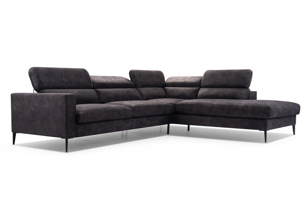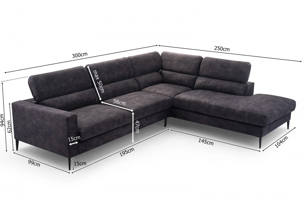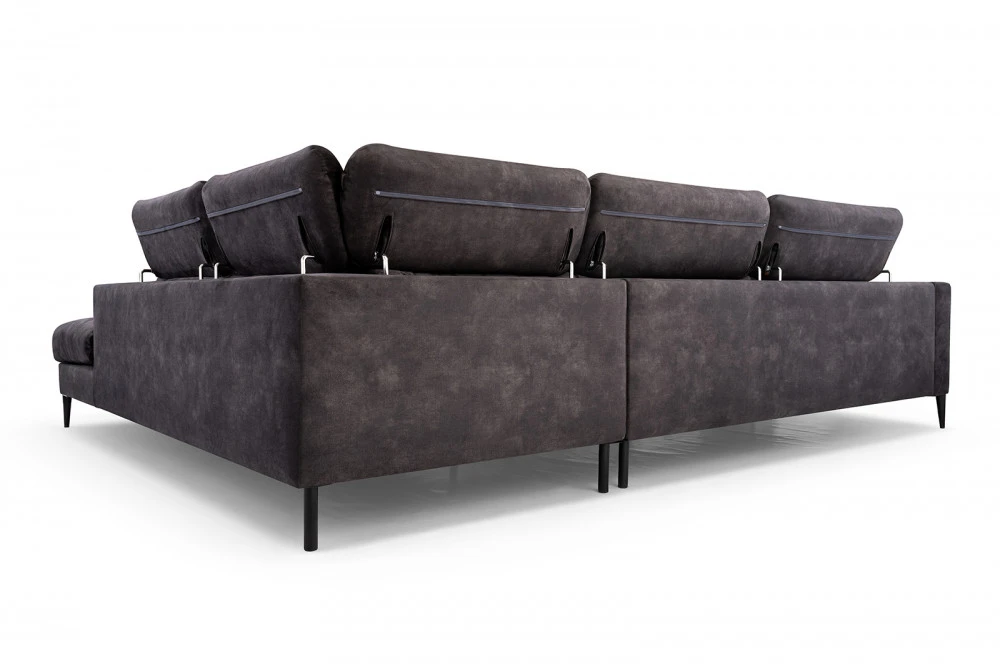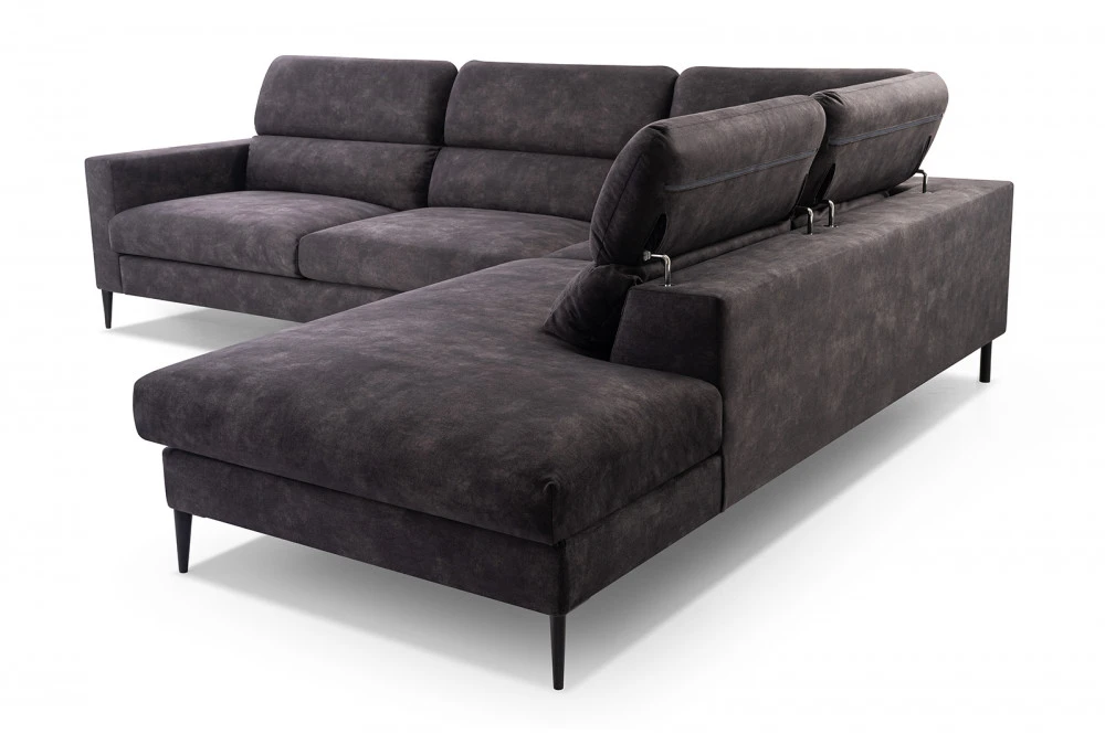 Moderní, prostorná a mimořádně pohodlná rohová pohovka, která svým rozměrem splní všechna vaše očekávání. Na této designové sedačce můžete lenošit u televize nebo pozvat přátele k příjemnému posezení. Velkou předností jsou také polohovatelné opěrky hlavy. Sedačka je vyrobena z vlnitých pružin v kombinaci s kvalitní PUR pěnou. Výhodou této sedací soupravy je možnost univerzálního sestavení, tzn. že podle potřeby můžete mít levou nebo pravou stranu. Potažena je čalounickou látkou Palladium v šedém provedení. Tato látka snižuje absorpci tekutin, usnadňuje údržbu a minimalizuje riziko ušpinění. Sedací souprava má očalouněná také záda, takže ji můžete umístit i do prostoru. Sedací souprava není rozkládací a nemá úložný prostor.