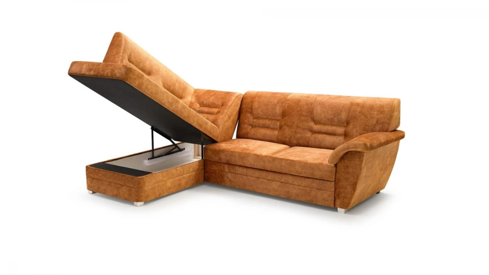 Moderní, rohová sedací souprava Dornia je rozkládací. Jednoduchým rozkladem vzniká lůžko vhodné k příležitostnému spaní. Má uložný prostor, který lze využít například na lůžkoviny. Sedací souprava je pružinová v kombinaci s kvalitní PUR pěnou. Je celočalouněná a je možno ji umístit také do prostoru. Na úvodním obrázku je sedací souprava vyobrazena v pravém provedení. Správná barva je zobrazena na první fotografii. Ostaní fotografie jsou pouze ilustrační. Vyobrazené doplňky a dekorace nejsou v ceně.