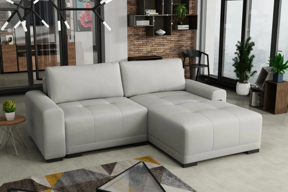 Manon je moderní rohová sedací souprava s nadčasovým designem. Její předností je pohodlí, praktičnost a univerzální použití. Můžete si ji podle potřeby sestavit jako levou nebo pravou, což je výhoda při zařizování obývacího pokoje. Nemusíte přemýšlet do jakého rohu postavíte sedací soupravu, jednoduše ji podle potřeby přizpůsobíte. Pohodlí při sezení zajišťuje kombinace pružin faliste s kvalitní PUR pěnou a velké opěrné polštáře, které jsou odnímatelné. Praktickou stránkou sedací soupravy je úložný prostor a možnost rozložení k občasnému přespání Vaší návštěvy. Sedací souprava je potažena jednobarevnou látkou a v nabídce najdete více barevných variant. V ceně sedací soupravy jsou 2 velké opěrné polštáře. Ostatní vyobrazené dekorace nejsou v ceně. Správná barva potahové látky je zobrazena na první fotografii. Fotografie sedací soupravy v rozkladu jsou pouze ilustrační.