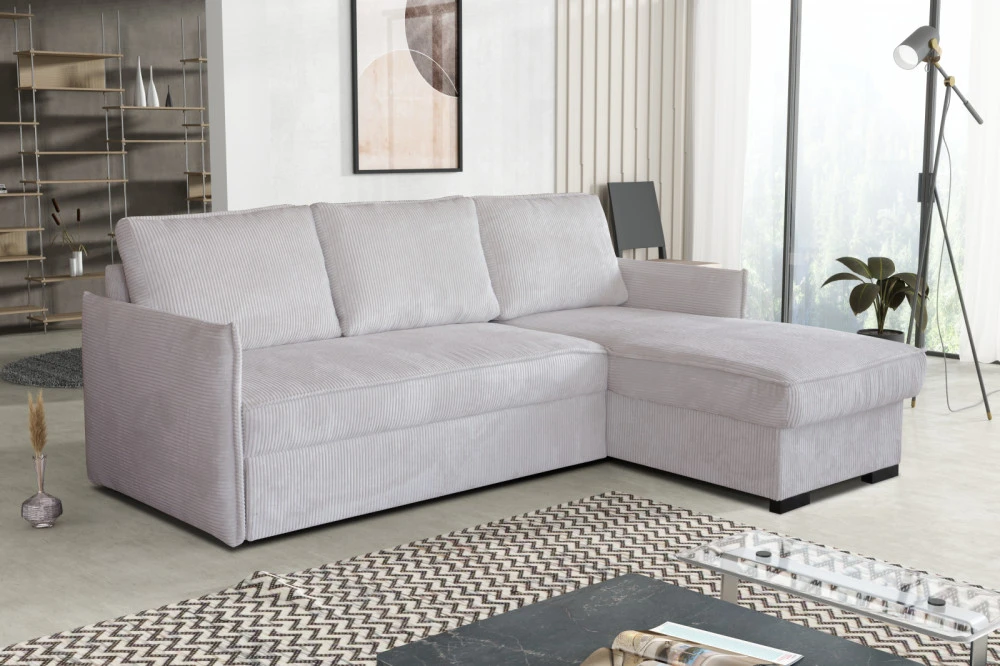Magie je moderní rohová sedací souprava s nadčasovým designem. Její předností je pohodlí, praktičnost a univerzální použití. Můžete si ji podle potřeby sestavit jako levou nebo pravou, což je výhoda při zařizování obývacího pokoje. Nemusíte přemýšlet do jakého rohu postavíte sedací soupravu, jednoduše ji podle potřeby přizpůsobíte. Pohodlí při sezení zajišťuje kombinace pružin faliste s kvalitní PUR pěnou a velké opěrné polštáře, které jsou odnímatelné, takže si je můžete přizpůsobit svým potřebám. Praktickou stránkou sedací soupravy je úložný prostor a možnost rozložení k občasnému přespání Vaší návštěvy. Sedací souprava je potažena kvalitní látkou a v nabídce najdete více barevných variant. V ceně sedací soupravy jsou 3 velké opěrné polštáře. Ostatní vyobrazené dekorace nejsou v ceně. Správná barva potahové látky je zobrazena na úvodních fotografiích. Ostatní fotografie rozkladu jsou pouze ilustrační.