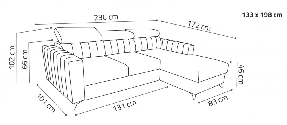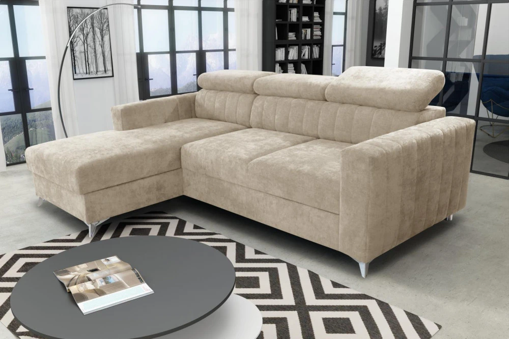 Sedací souprava Mildred osloví každého, kdo preferuje moderní vzhled a zároveň pohodlí a praktičnost. Je potažena kvalitní potahovou látkou s kontrastním prošitím. Sedací souprava je velmi pohodlná a dostatečně velká na posezení s přáteli, nebo rodinou. Pro případ, že se návštěva zdrží přes noc, je sedací souprava vybavena rozkladem, díky kterému sedací soupravu jednoduše přeměníte v prostorné lůžko. Sedací souprava má praktický úložný prostor, který můžete využít např., na lůžkoviny. Pohodlí při sezení zajišťuje výplň sedáků, kterou tvoří kombinace pružin faliste s kvalitní PUR pěnou. Komfort a pohodlí při odpočinku zvyšuje polohovací opěrka hlavy. Sedací soupravu nabízíme v levém i pravém provedení.