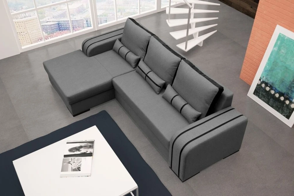 Rohová sedací souprava Perry, se stane ozdobou každého moderního interiéru. Sedací souprava je rozkládací a má také praktický úložný prostor. Jednoduchým rozložením vznikne dostatečně velké lůžko vhodné k příležitostnému spaní. Výplň sedáku tvoří kombinace pružin faliste s kvalitní PUR pěnou. Tato kombinace zajistí pohodlné sezení. Sedací souprava je potažena kvalitní látkou v kombinaci s barevným akcentem. Tuto sedačku nabízíme v několika barevných variantách. V ceně sedací soupravy jsou 3 velké opěrné polštáře 3 malé bederní polštářky. Ostatní vyobrazené dekorace nejsou v ceně.