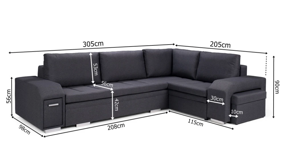 - Dva velké úložné prostory přímo v sedací soupravě – perfektní pro lůžkoviny, deky a další textilie.