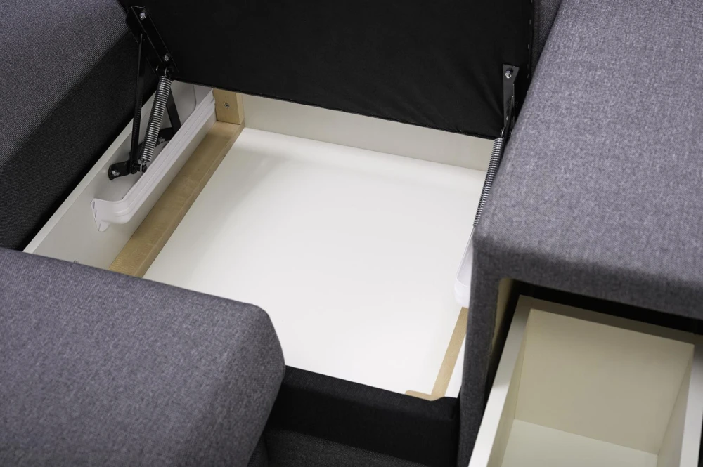 Samozřejmostí je prostorný úložný prostor, který využiješ například pro uložení lůžkovin, dek nebo sezónních doplňků. Další úložné prostory se nacházejí v područích, kde je jen na tobě, jaké využití jim zvolíš. Díky tomu získáš další praktické místo navíc a udržíš obývací pokoj přehledný.