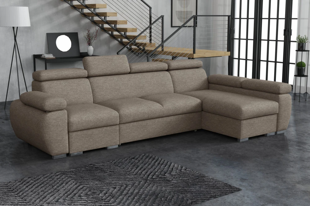 Sedací souprava Bodie se stane příjemným centrem odpočinku, nebo setkání s rodinou a přáteli. Je velmi pohodlná, praktická a nabízí dostatek místa k sezení. Praktickou stránkou sedací soupravy je možnost rozložení k příležitostnému přespání a také nepostradatelný úložný prostor. Pohodlí při sezení zajišťuje výplň sedáků, kterou tvoří kombinace vlnitých pružin s kvalitní PUR pěnou. Při odpočinku, nebo sledování televize Vám zvýší pohodlí polohovací opěrky. Sedací souprava je potažena kvalitní látkou Aragon, která je vyrobena z vysoce kvalitní příze, extrémně měkká a příjemná na dotek. Tato tkanina je odolná před pronikáním vlhkosti a tekutin. Látka se snadno čistí a udržuje v perfektním stavu. Sedací soupravu nabízíme v levém i pravém provedení. Vyobrazené doplňky a dekorace nejsou v ceně. Fotografie sedací soupravy v rozkladu jsou pouze ilustrační. Správný barevný odstín je zobrazen na úvodní fotografii.