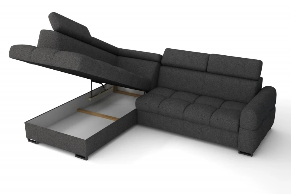 Sedací souprava disponuje praktickým mechanismem rozkladu, díky kterému ji během chvíle proměníte v pohodlné lůžko pro příležitostné přespání návštěvy. Nechybí ani úložný prostor, ideální pro lůžkoviny, deky nebo polštáře. Získáte tak praktické řešení, které šetří místo a zvyšuje komfort každodenního používání.