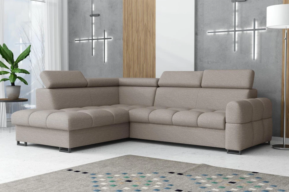 Sedací soupravu nabízíme v levém i pravém provedení, takže ji snadno přizpůsobíte dispozici vašeho prostoru a vytvoříte harmonický a funkční interiér.