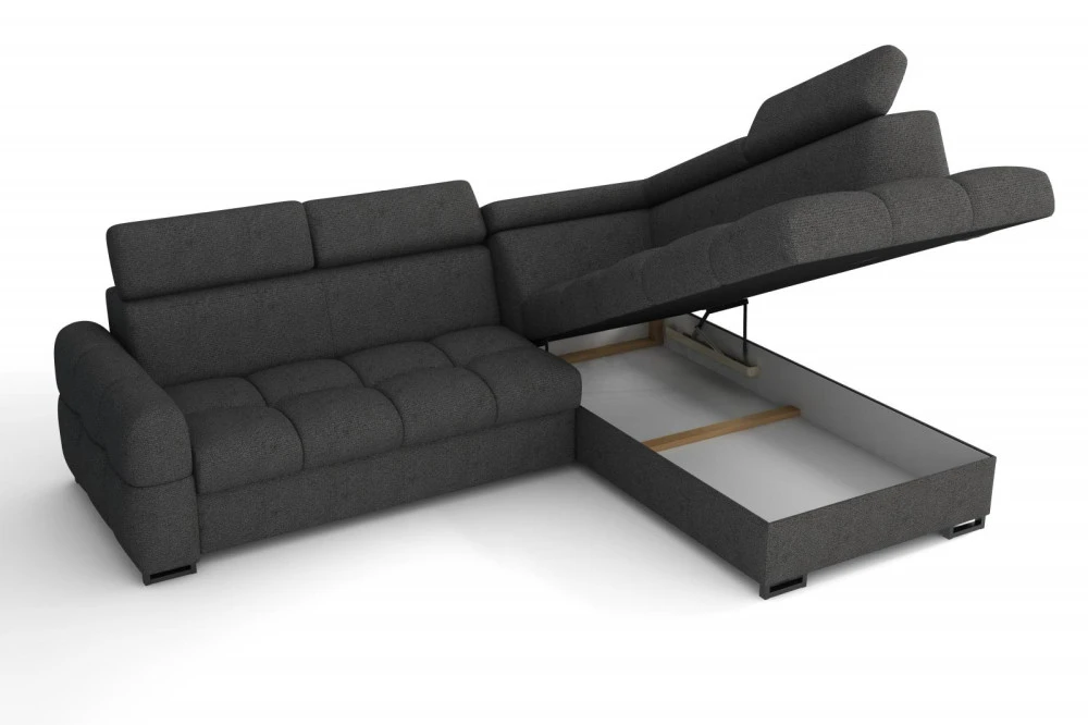 Součástí sedací soupravy je jednoduchý mechanismus rozkladu, díky kterému během chvíle vytvoříte pohodlné lůžko pro příležitostné přespání návštěvy. Praktický úložný prostor nabízí dostatek místa pro lůžkoviny, deky i polštáře a pomůže udržet váš interiér přehledný a uklizený.