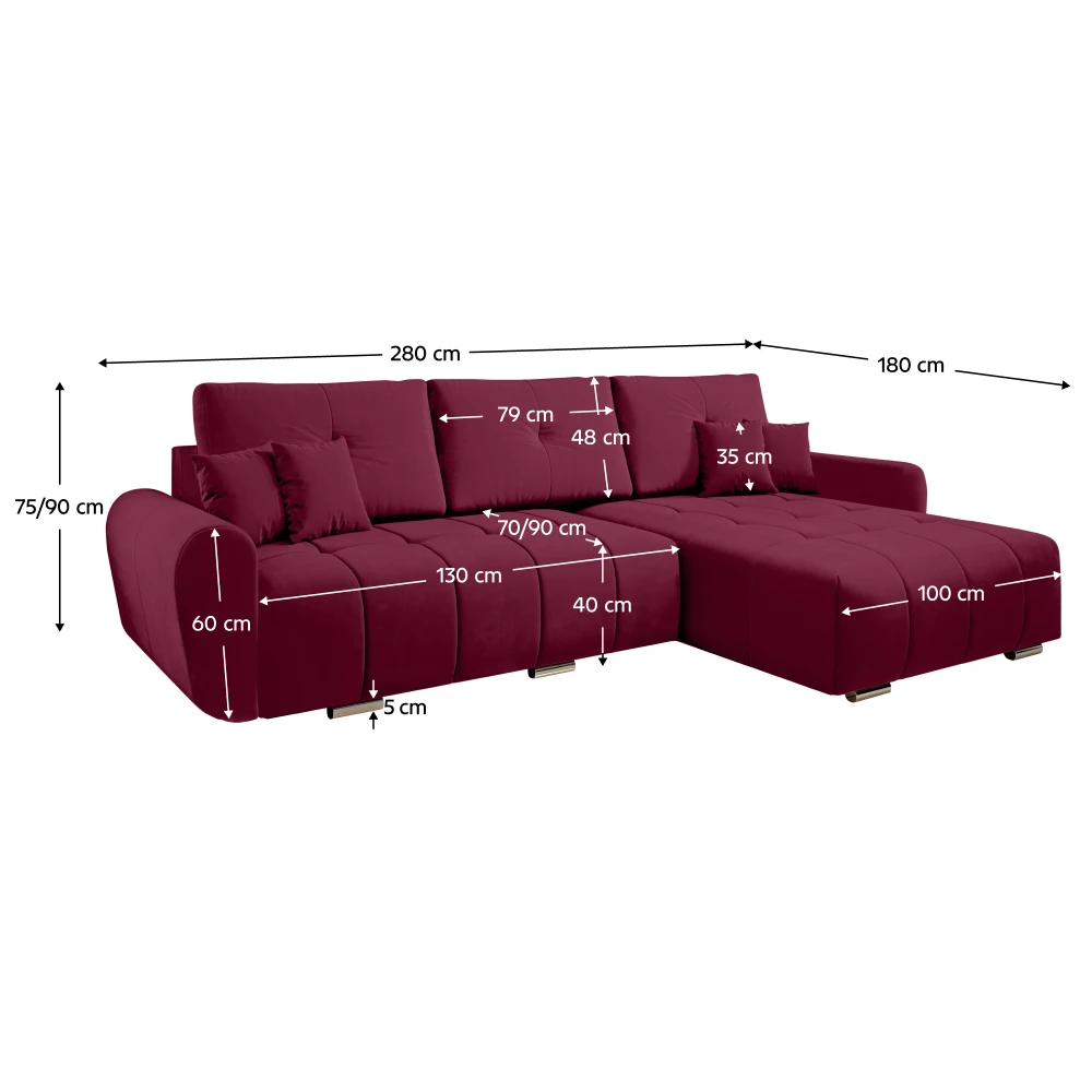Rohová sedací souprava Monolith je ideální volbou pro ty, kteří chtějí výrazný design, vysoký komfort a maximální praktičnost. Elegantní vínová barva dodává interiéru charakter a nádech luxusu, zatímco moderní prošívání podtrhuje její nadčasový vzhled.