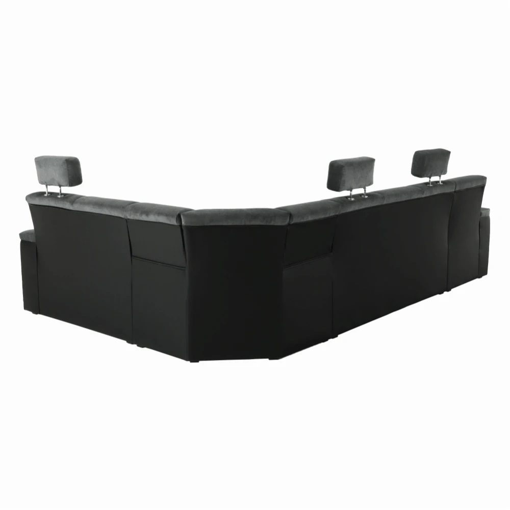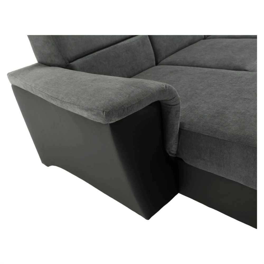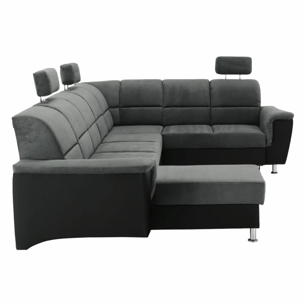 Sedací souprava, ekokůže černá / látka tmavě šedá, pravá, SANTIAGO U