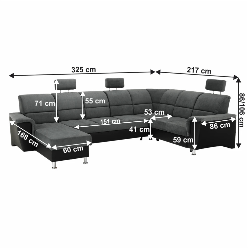 Rozměry (ŠxHxV): 325x86 / 106x168 / 217 cm