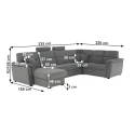 Rozměry (ŠxHxV): 335x220 / 155x93 / 105 cm, plocha na spaní (ŠxD): 125x270 cm