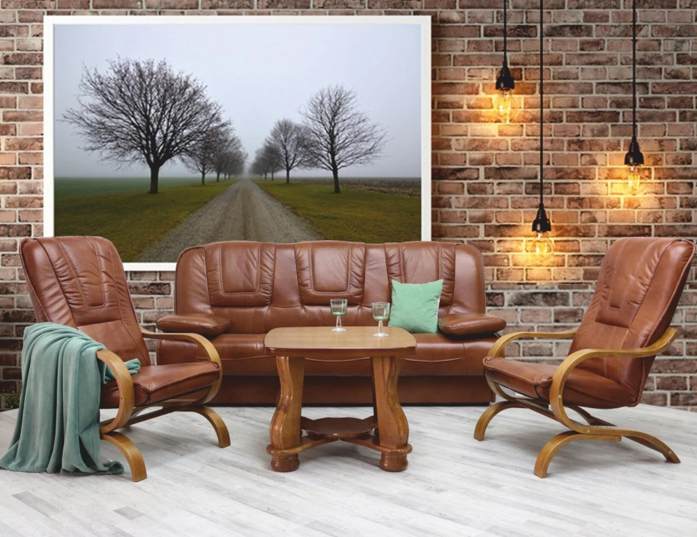 Stylová sedací souprava Frida nadchne každého, kdo má v oblibě rustikální nábytek. Její precizní a kvalitní zpracování Vám zaručí luxus a pohodlí. Jakmile se do ní jednou usadíte, nebude se Vám chtít vstát. Polstrování sedací soupravy je vyrobené z kvalitní hovězí kůže. Konstrukce je vyrobená z masivního dubového dřeva. Sedací souprava je rozkládací, plocha po rozkladu je 120 x 200 cm. V případě potřeby ji jednoduše rozložíte k občasnému přespání Vaší návštěvy. Odlehčená křesla zajišťují snadnou manipulaci. Záda pohovky nejsou potažena kůží, proto není vhodné umístění do prostoru. Kůži je nutné čistit pouze za pomocí speciálních prostředků na čištění a konzervaci přírodních kůží, dřevo je třeba čistit suchým měkkým hadříkem. Vyobrazené dopňky a dekorace nejsou v ceně. Křesla jsou dodávána v demontu.