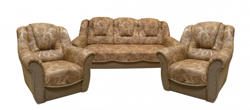 Sedací souprava Bára je stále velmi oblíbeným klasickým modelem sedací soupravy v provedení 3F+1+1. Je velmi pohodlná a zároveň praktická. Sedací souprava je rozkládací a samozřejmostí je i úložný prostor, který můžete využít např.na lůžkoviny. Jednoduchým rozkladem pomocí systému "klik klak" vznikne lůžko k příležitostnému přespání Vaší návštěvy. Sedací souprava je potažena kvalitní látkou, v kombinaci vzoru a jednobarevné látky. Cena sedací soupravy je uvedena za rozkládací trojsed a dvě křesla.