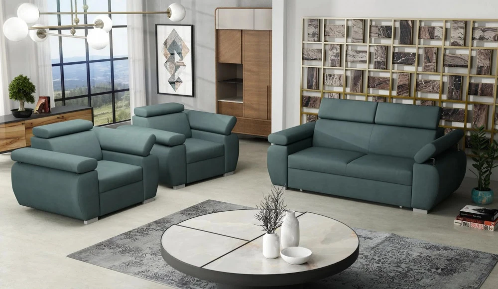 Sedací souprava Bodie je vyrobena v jednoduchém elegantním designu, který se hodí do všech interiérů. Sedací souprava je potažena kvalitní látkou Kronos, která je sametově hebká a jemná, má třpytivý odlesk, je odolná proti vyblednutí a nežmolkovatí. Tento potahový materiál zanechává na povrchu stopy podle toho, jakým směrem se položí krátký vlas. Sedací soupravu nabízíme v několika odstínech této látky. Výplň sedáků tvoří kombinace vlnitých pružin s kvalitní HR pěnou. Pro pohodlí při sezení a odpočinku, je sedací souprava vybavena polohovacími opěrkami hlavy. Cena je uvedena za sestavu 3+1+1. Vyobrazené doplňky a dekorace nejsou v ceně.