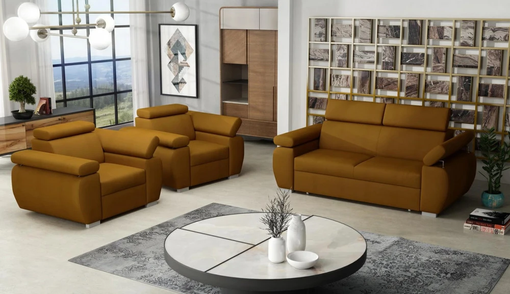 Sedací souprava Bodie je vyrobena v jednoduchém elegantním designu, který se hodí do všech interiérů. Sedací souprava je potažena kvalitní látkou Kronos, která je sametově hebká a jemná, má třpytivý odlesk, je odolná proti vyblednutí a nežmolkovatí. Tento potahový materiál zanechává na povrchu stopy podle toho, jakým směrem se položí krátký vlas. Sedací soupravu nabízíme v několika odstínech této látky. Výplň sedáků tvoří kombinace vlnitých pružin s kvalitní HR pěnou. Pro pohodlí při sezení a odpočinku, je sedací souprava vybavena polohovacími opěrkami hlavy. Cena je uvedena za sestavu 3+1+1. Vyobrazené doplňky a dekorace nejsou v ceně.