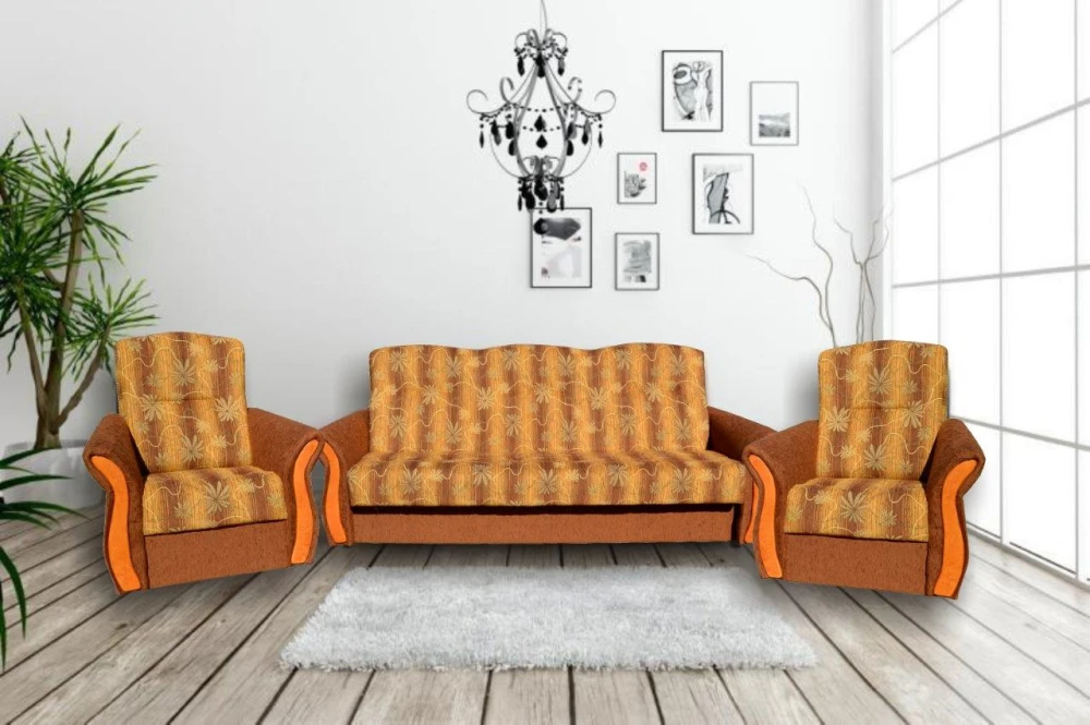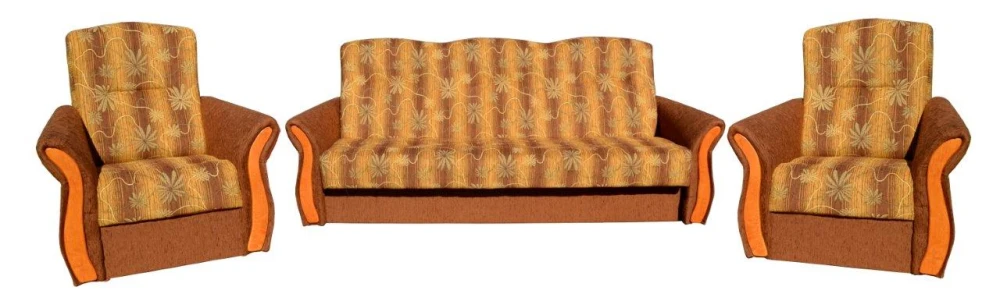 Sedací souprava Ibiza je stále velmi oblíbeným klasickým modelem sedací soupravy v provedení 3F+1+1. Je velmi pohodlná a zároveň praktická. Sedací souprava je rozkládací a samozřejmostí je i úložný prostor, který můžete využít např.na lůžkoviny. Jednoduchým rozkladem pomocí systému "klik klak" vznikne lůžko k příležitostnému přespání Vaší návštěvy. Sedací souprava je potažena kvalitní látkou, v kombinaci vzoru a jednobarevné látky. Cena sedací soupravy je uvedena za rozkládací trojsed a dvě křesla. Vyobrazené doplňky a dekorace nejsou v ceně.
