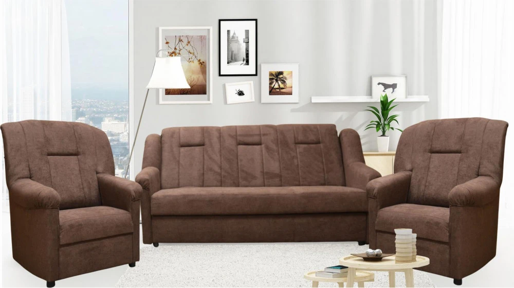 Klasická sedací souprava Panda, je díky svým rozměrům vhodná také do menších pokojů. Sedací souprava je rozkládací a samozřejmostí je i praktický úložný prostor. Jednoduchým rozložením pomocí systému "klik klak", vznikne lůžko vhodné k příležitostnému spaní. Sedací souprava je potažena kvalitní potahovou látkou. Sedací soupravu nabízíme v několika barevných provedeních, takže si určitě vyberet tu pravou pro Váš útulný obývací pokoj.