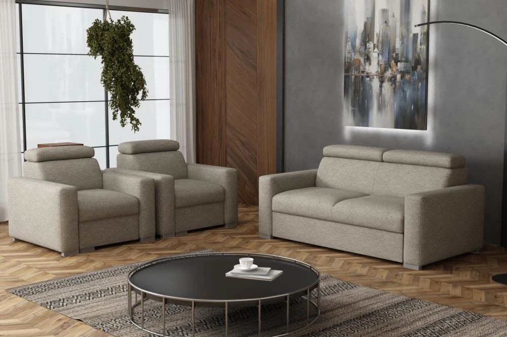 Sedací souprava se stane příjemným centrem odpočinku, nebo setkání s rodinou a přáteli. Je velmi pohodlná, praktická a nabízí dostatek místa k sezení. Pohodlí při sezení zajišťuje výplň sedáků, kterou tvoří kombinace vlnitých pružin s kvalitní PUR pěnou. Při odpočinku, nebo sledování televize Vám zvýší pohodlí polohovací opěrky. Sedací souprava je potažena kvalitní látkou Aragon, která je vyrobena z vysoce kvalitní příze, je extrémně měkká a příjemná na dotek. Tato tkanina je odolná před pronikáním vlhkosti a tekutin. Látka se snadno čistí a udržuje v perfektním stavu. Vyobrazené doplňky a dekorace nejsou v ceně. K této sedací soupravě lze objednat taburet s úložným prostorem 100 x 60 cm nebo taburet 50 x 50 cm.Sedací souprava bude dodána v látce, která je zobrazena na úvodních fotografiích.
