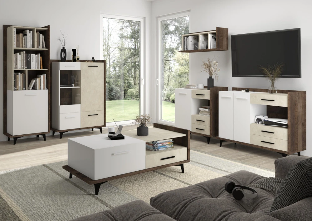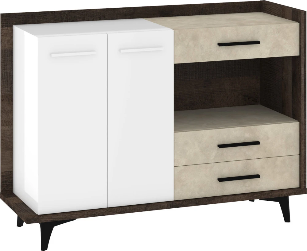 Kombinovaná komoda Box 02 dodá styl vašemu interiéru. Design je kombinací moderních prvků s retrem, které slaví návrat. Kombinace dřevodekorů s nestárnoucí bílo-černou kombinací je sázkou na jistotu.