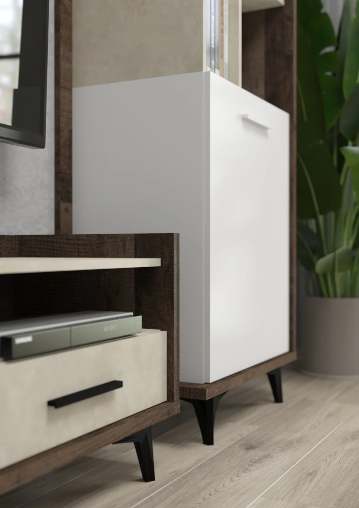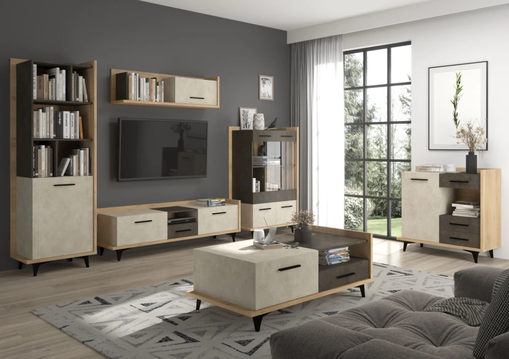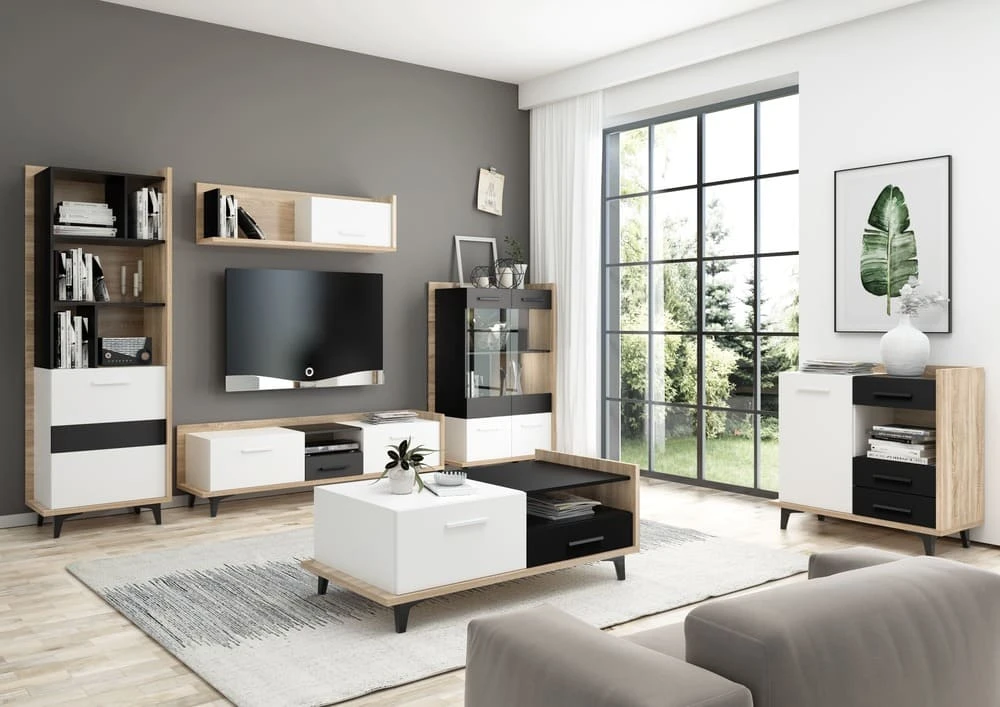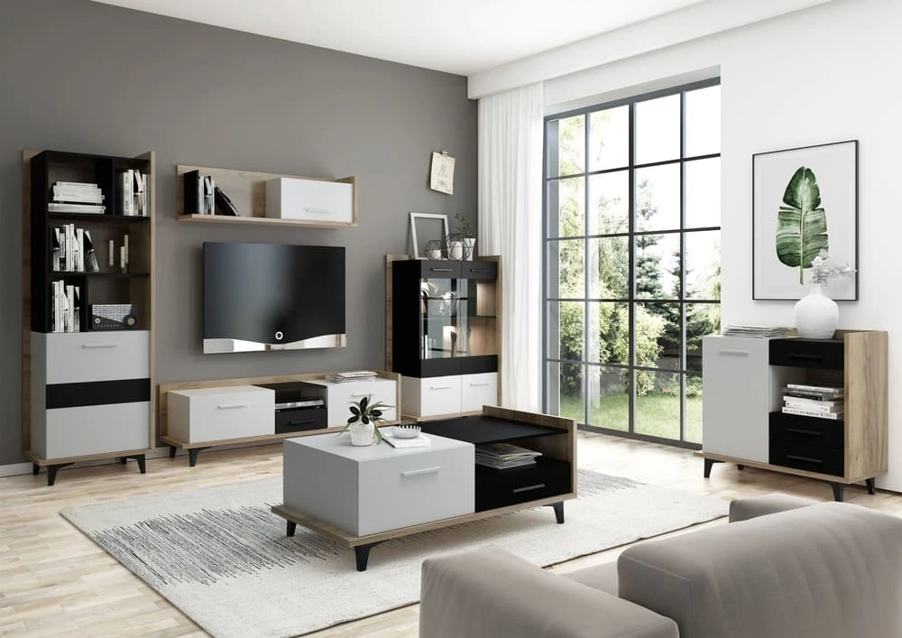 Konferenční stolek Box 03 dodá styl vašemu obýváku. Design je kombinací moderních prvků s retrem, které slaví návrat. Kombinace dřevodekorů s nestárnoucí bílo-černou kombinací je sázkou na jistotu. Konferenční stolek je součástí kolekce nábytku Box, kterou si můžete vybavit obývák nebo předsíň. Nábytek vyrobený z kvalitních lamino materiálů má hrany chráněné ABS. Kombinace 16 mm a 25 mm silných desek zajistí stabilitu a odolnost nábytku Box. Zásuvky mají kovové pojezdy opatřené tichými dojezdy. Retro nádech kolekci Box dodávají 12 cm vysoké nožky, které nejen dobře vypadají, ale také vám umožní jednoduchý úklid i pod skříňkami. Údržba nábytku je snadná, stačí vám vlhký hadřík či prachovka. Konferenční stolek Box je skvělým a zároveň praktickým doplňkem domácnosti. Je vybavený 2 výklopnými dvířky a 2 zásuvkami, to znamená, že do úložného prostoru se dostanete z obou stran stolku. Proto doporučujeme umístění stolku do prostoru nikoli ke stěně.Nabízíme vám výběr z několika moderních dekorů. Stolek dodáváme v demontu.