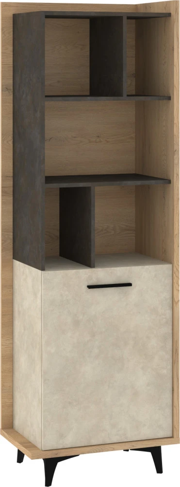 Regál Box 06 je vybavený policovou částí, kterou můžete využít na uložení knížek či fotografií a jednodveřovou skříňkou, ve které najdete 2 poličky.