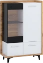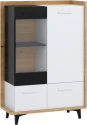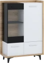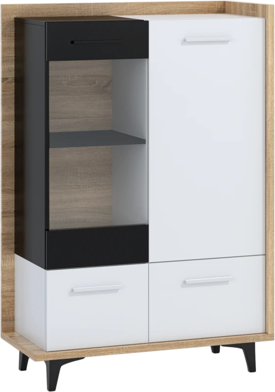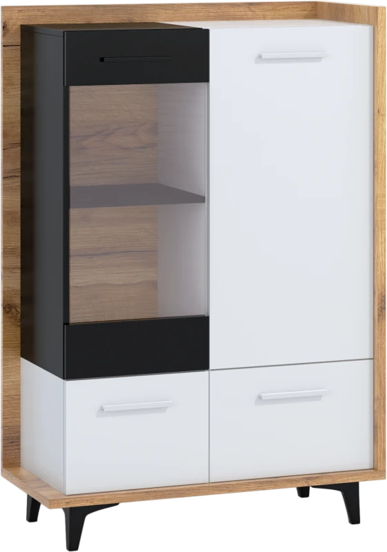 Design je kombinací moderních prvků s retrem, které slaví návrat. Kombinace dřevodekorů s nestárnoucí bílo-černou kombinací je sázkou na jistotu. Nábytek vyrobený z kvalitních lamino materiálů má hrany chráněné ABS. Kombinace 16 mm a 25 mm silných desek zajistí stabilitu a odolnost nábytku Box. Zásuvky mají kovové pojezdy opatřené tichými dojezdy. Retro nádech kolekci Box dodávají 12 cm vysoké nožky, které nejen dobře vypadají, ale také vám umožní jednoduchý úklid i pod skříňkami. Údržba nábytku je snadná, stačí vám vlhký hadřík či prachovka. Vitrínu Box 13 vám dodáme v demontu.