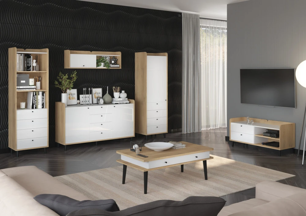 Hledáte funkční, trendový a nadčasový nábytek, který je propracovaný a snadno se udržuje? Systém Dolce uspokojí vaše nároky na design i funkčnost.Kolekce nábytku Dolce vyniká designem, vysokou funkčností a čistými liniemi. Lamino materiál o síle 16 mm a 25 mm doplňují ABS hrany, které chrání nábytek proti mechanickému poškození. Skříňky i zásuvky se systémem tichého dovírání zvýší komfort užívání. Výrazným prvkem jsou černé dřevěné nožky různých výšek, které dodají celé kolekci originální vzhled. A nejen to, vyšší nožky jsou také praktické při uklízení. Vitríny jsou vybavené kouřovými skly, které ještě více zdůrazní originální vzhled systému. Černou barvu mají i úchyty a spolu s bílým leskem na předních plochách skvěle doplňují dřevodekory reflektující moderní trendy v bydlení. S kolekcí Dolce nemůžete šlápnout vedle!