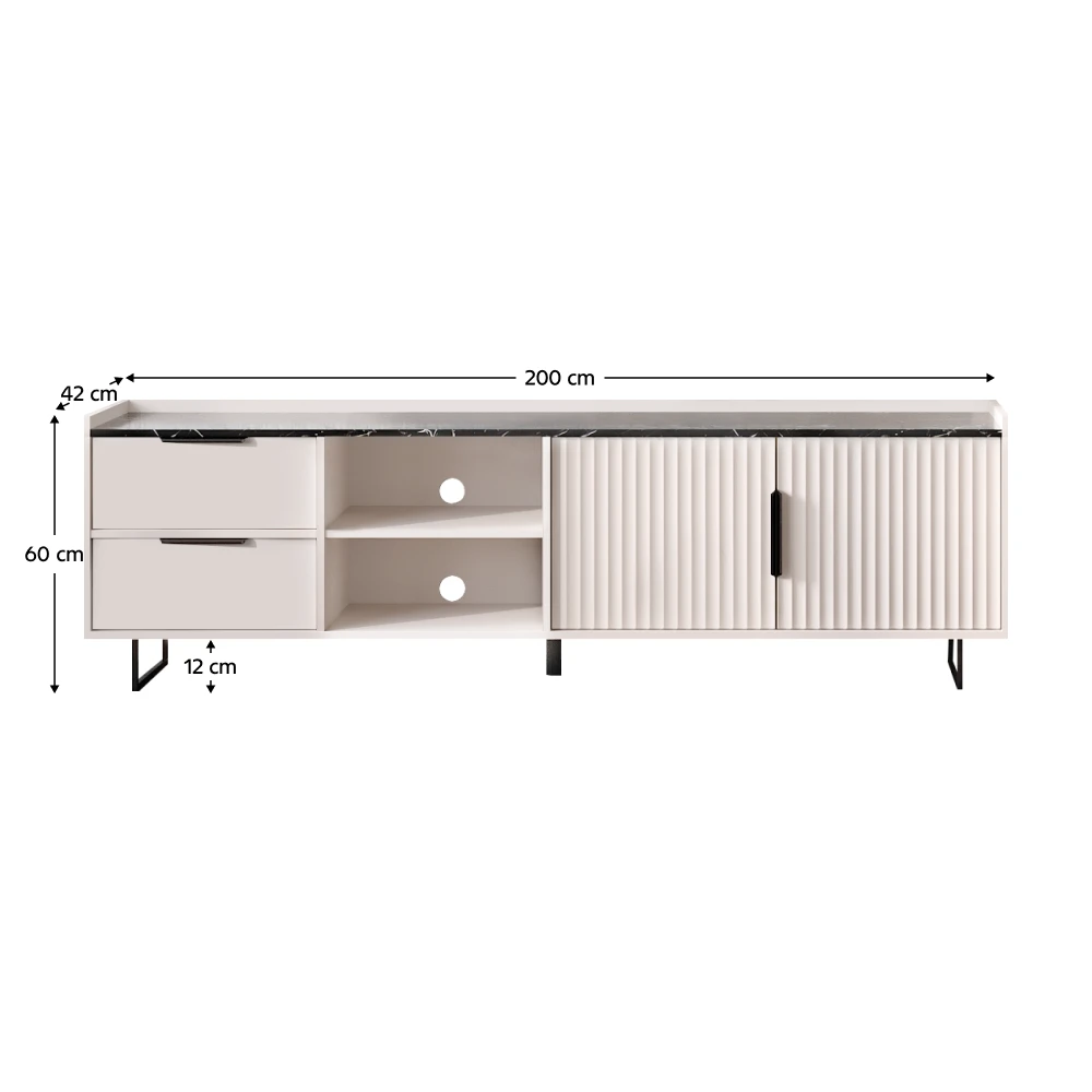 Díky šířce 200 cm poskytuje dostatek prostoru pro televizor i veškerou elektroniku.