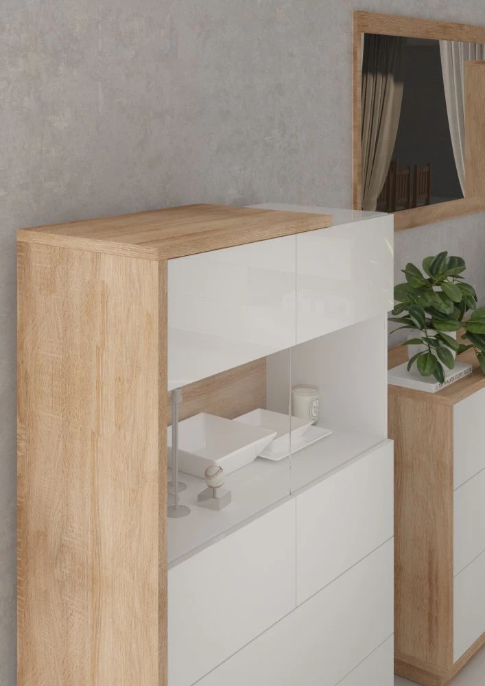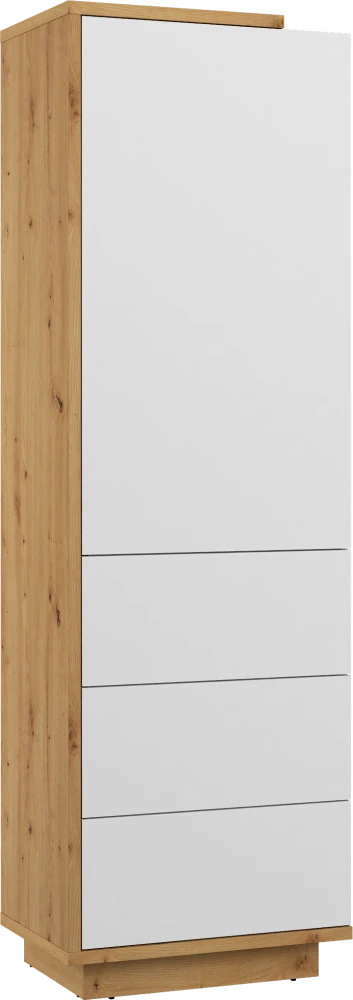 Systémový nábytek Hybrid je snem každého, kdo preferuje jednoduchost, moderní trendy a vzdušný interiér. Systém Hybrid se vyrábí z kvalitních lamino desek o síle 16 mm a 25 mm. Desky mají ABS hranění, které zvyšuje odolnost proti odštípnutí hran. Minimalistický design podtrhuje nadčasová bílá ve vysokém lesku, která vkusně navazuje na přírodní dekory. Moderní charakter systému doplňuje bezúchytkové provedení zásuvek a dvířek, které mají navíc systém push to open pro váš vyšší komfort užívání. Harmonický vzhled nenarušují žádné nožky, protože systém Hybrid je vybavený soklem. Sokl navíc zvyšuje stabilitu nábytku. Vybavte si svůj obývák, předsíň či jídelnu krásným a luxusním nábytkem z kolekce Hybrid a proměňte svůj domov do aktuálního trendu skandi bydlení.Skříň Hybrid 01 je jednodveřová a má uvnitř 4 police. Dodáváme v demontu.