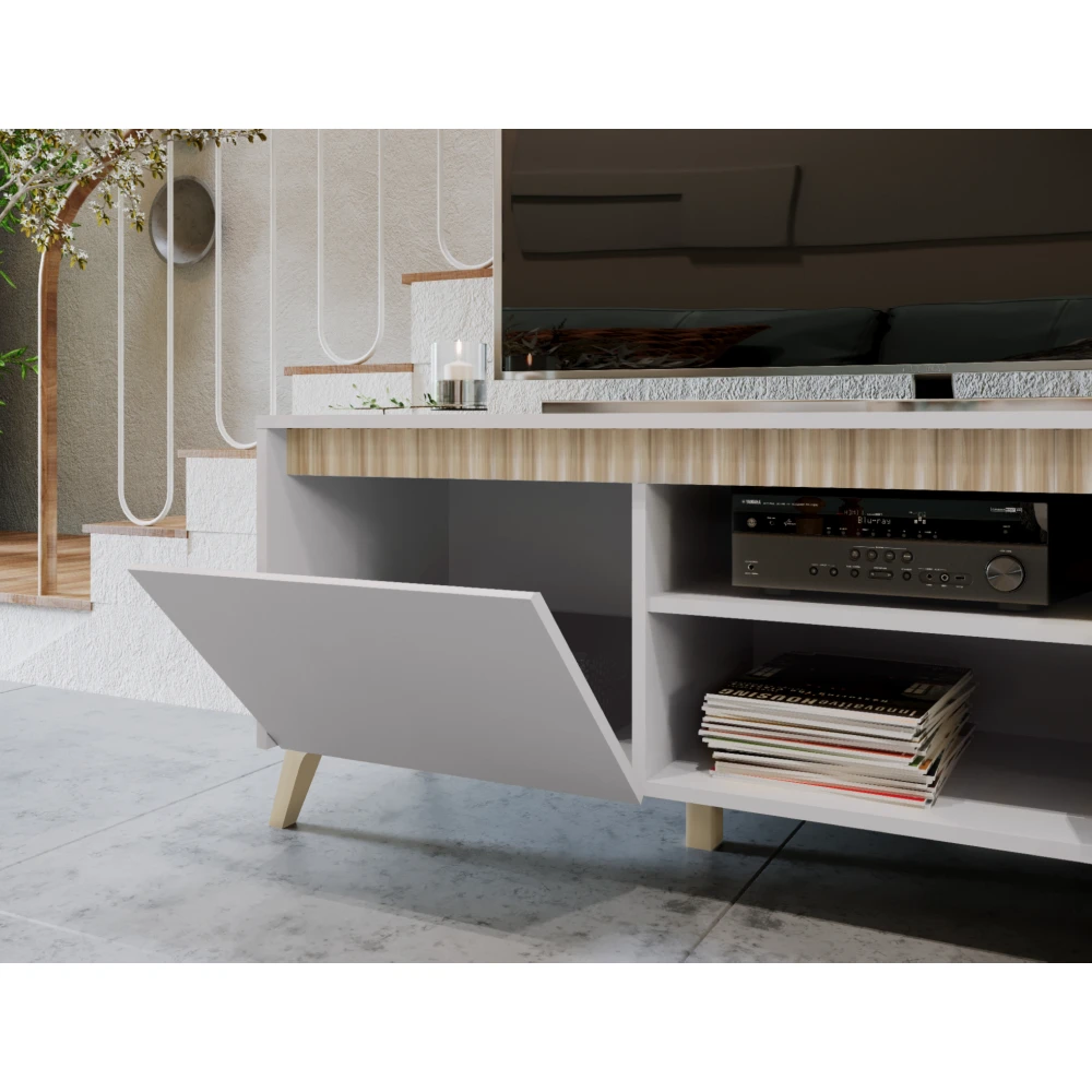 Tento TV stolek je ideální volbou pro ty, kteří hledají prostorný, moderní a praktický nábytek, který nabídne dostatek místa pro elektroniku i každodenní potřeby.