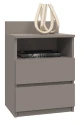 Nepostradatelným prvkem každé ložnice jsou noční stolky. Nadčasový stolek Malvína v minimalistickém designu splní očekávání všech, kteří oceňují kombinaci jednoduchosti a elegance. Bezúchytková čela zásuvek zajistí pohodlné používání a dokreslí moderní a útulný charakter vašeho interiéru. Je vyroben ze snadno udržovatelného lamina, hrany jsou zakončené vysoce odolným ABS materiálem.