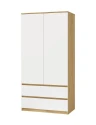 Šatní skříň Malvína v trendy barvách a moderním designu je praktický kus nábytku, který najde své uplatnění v ložnici, dětském pokoji, ale také v kanceláři nebo domácí pracovně. Nabízí dostatek úložného prostoru s možností instalace polic nebo šatní tyče v závislosti na vašich požadavcích. Dvířka se systémem TIP-ON se otevírají po jemném zatlačení čela dvířek. Nábytek je vyroben z nejkvalitnější laminované desky odolné proti poškrábání a vlhkosti, hrany jsou zakončené ABS materiálem.