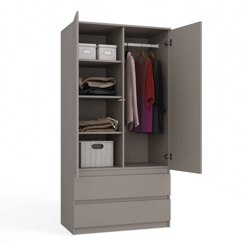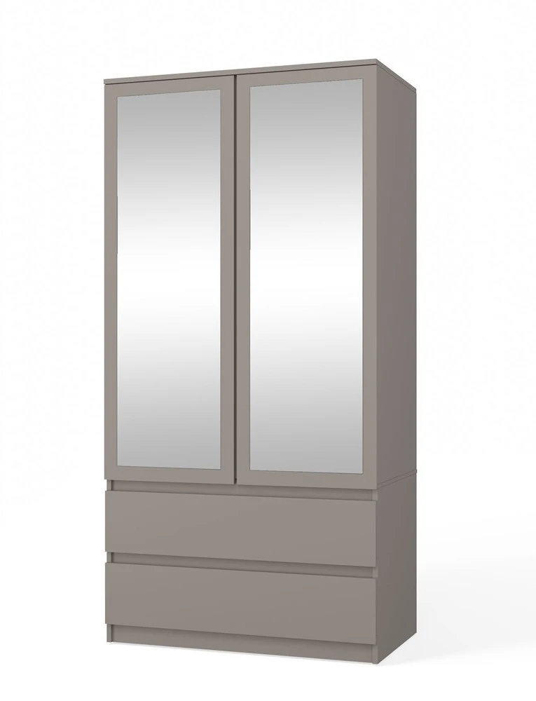 Šatní skříň Malvína 2S-90 šedá - jíl/zrcadlo