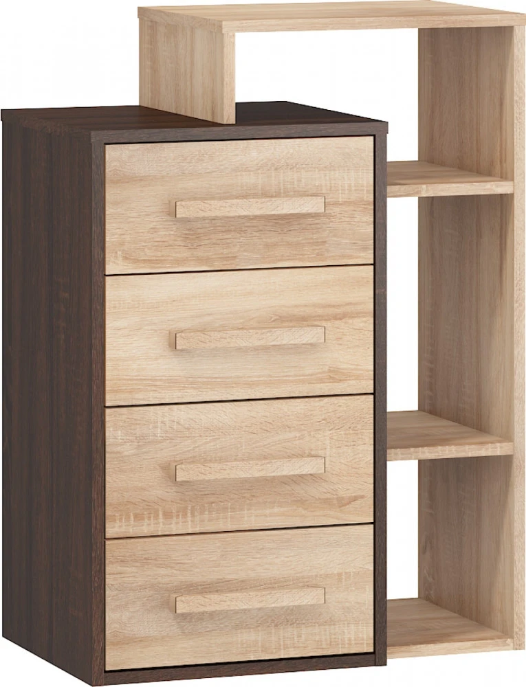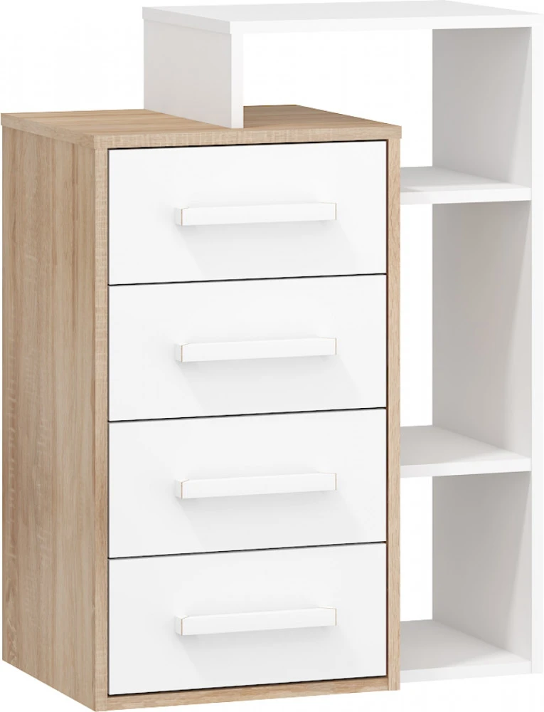 Komoda P4S Rio se skvěle hodí do moderně zařízených interiérů - zejména obývacích pokojů, ložnic, jídelen a pracoven. LTD materiál, ze kterého se komoda skládá, zajišťuje vysokou odolnost a špičkovou kvalitu. Komoda nabízí čtyři zásuvky a tři police, které můžete využít na uskladnění různých nezbytností. Komodu si můžete vybrat z několika barevných variant. Zajímavý design barev dodává komodě ještě více na luxusu a nadčasovosti.