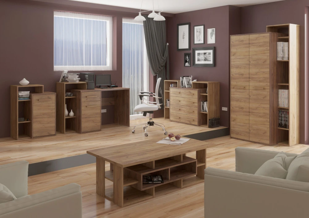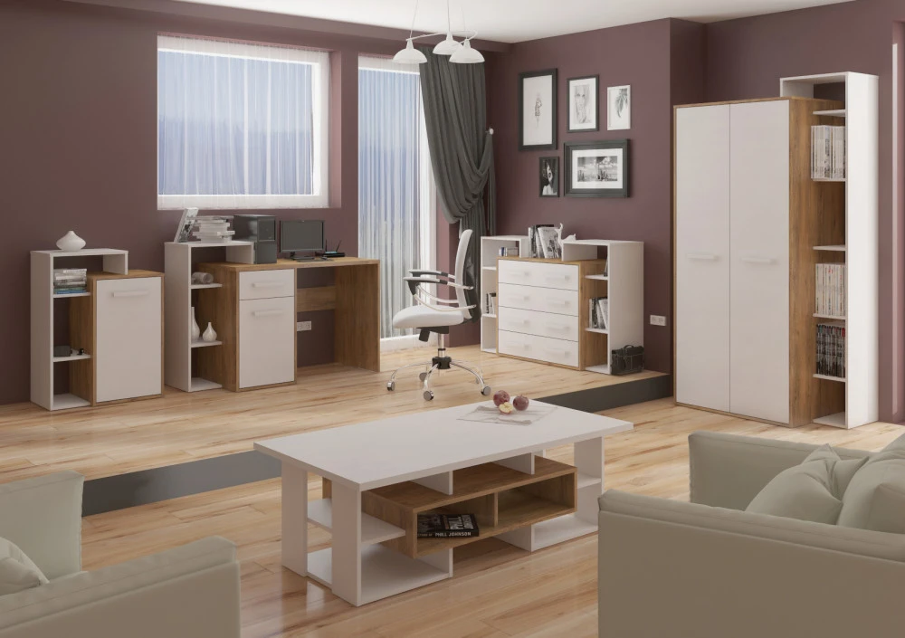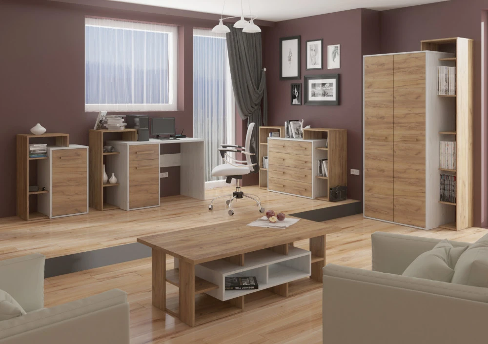 Pracovna Rio 6 se skládá z - PC stůl L Rio 03, komoda 4S Rio 07, komoda L1D Rio 08, skříň P2D Rio 24. Můžete si k ní také dokoupit konferenční stolek N Rio 11.