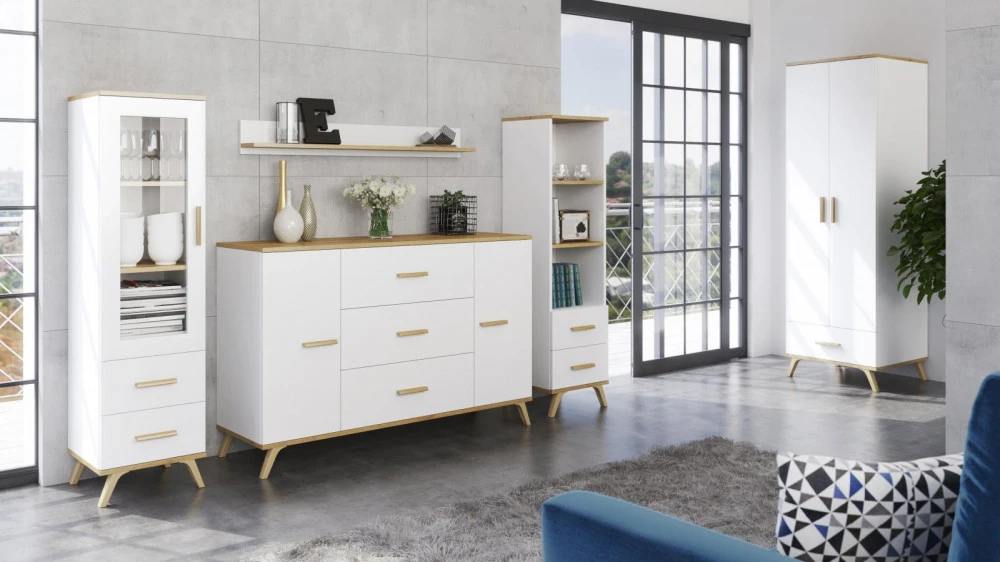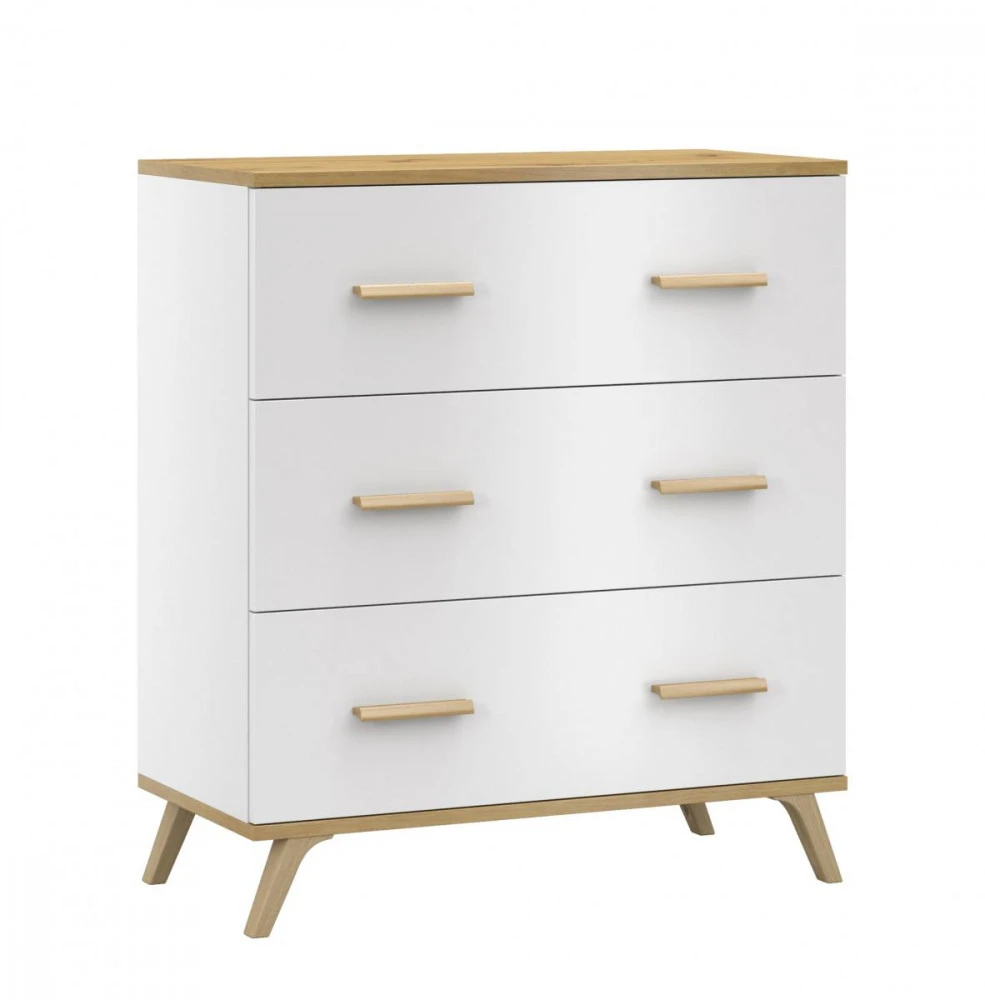 Komoda s šuplíky Roky 8 je vyrobena z lamina v krásném dekoru bílá a dub Artisan. Lamino tloušťky 18 mm je odolné a je zakončeno lištou ABS. Jistě oceníte i snadnou údržbu. Komoda je velmi praktická a šuplíky pojmou vše potřebné. Rukojeti v dekóru dřeva jsou vyrobeny z plastu. Je dodávána v demontu. Součástí balení je montážní návod včetně všech spojovacích prvků.