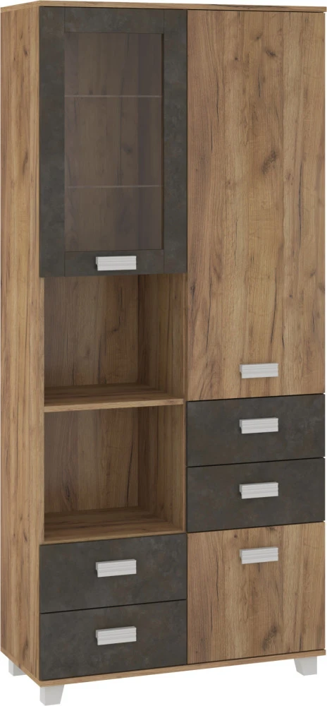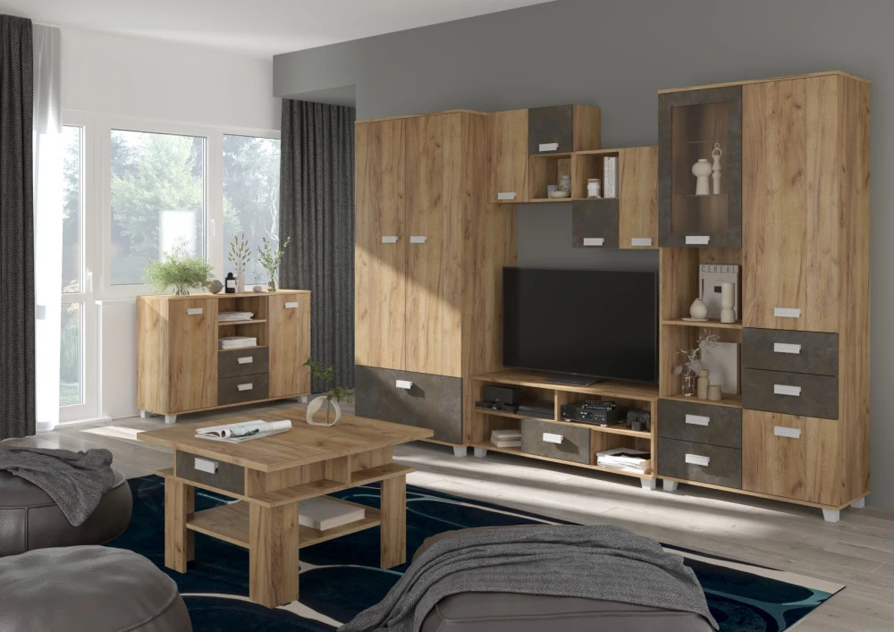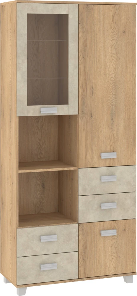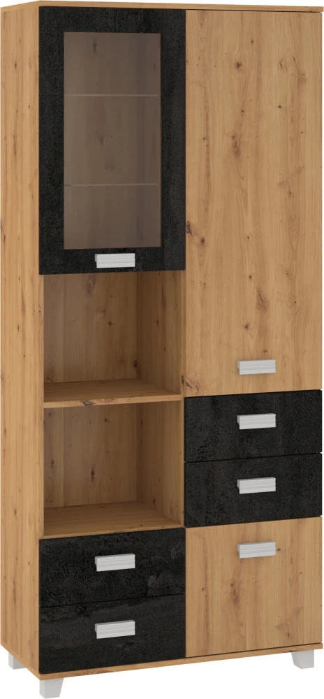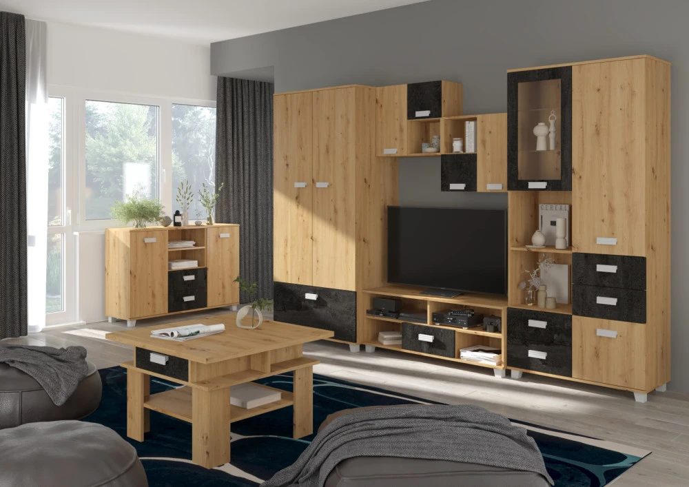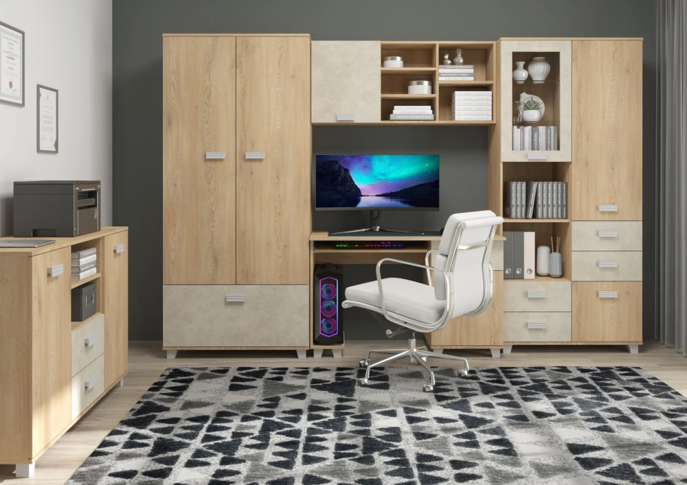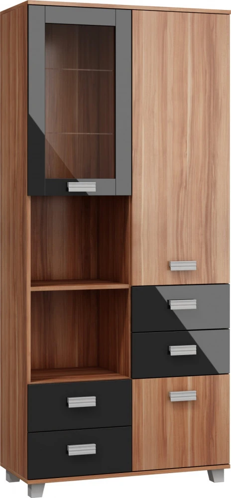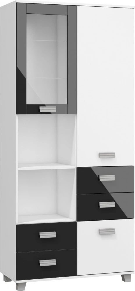 Regál má spoustu úložného prostoru jak v podobě skříněk, tak i zásuvek a odkládacích poliček. Vhodný kombinovat se systémovým nábytkem Solo.