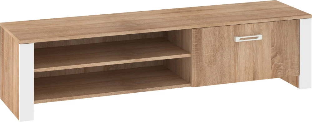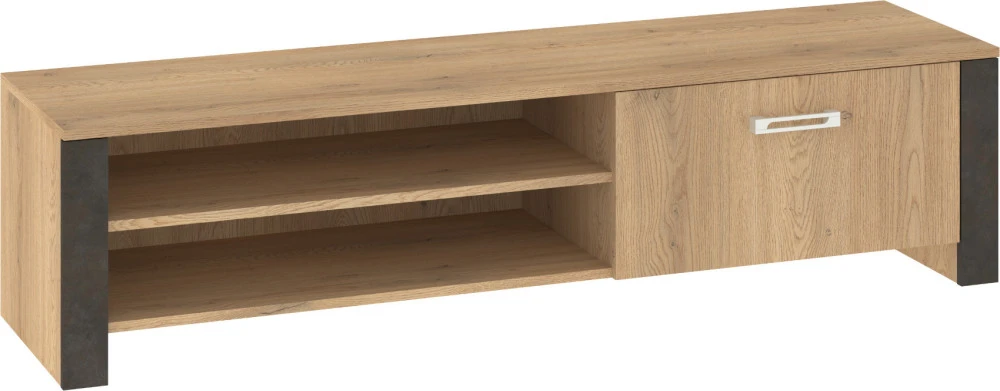 Televizní stolek Hugo s dvířky a dvěma přihrádkami na TV příslušenství, je vhodný do moderně řešených interiérů.