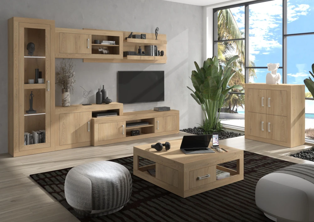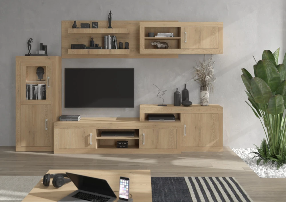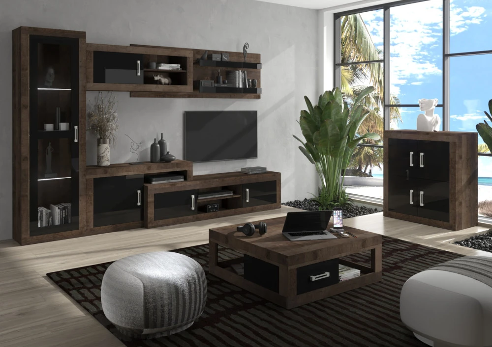 Televizní stolek se dvěma dvířky je vyroben z lamina o síle 16 mm. Originální komponent k sestavení obývací stěny Verin.