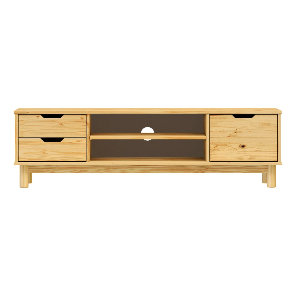 materiál masiv borovice, lakované provedení 2 zásuvky s kovovými pojezdy, 1 dvířka, 1 police otvor na protažení kabelů