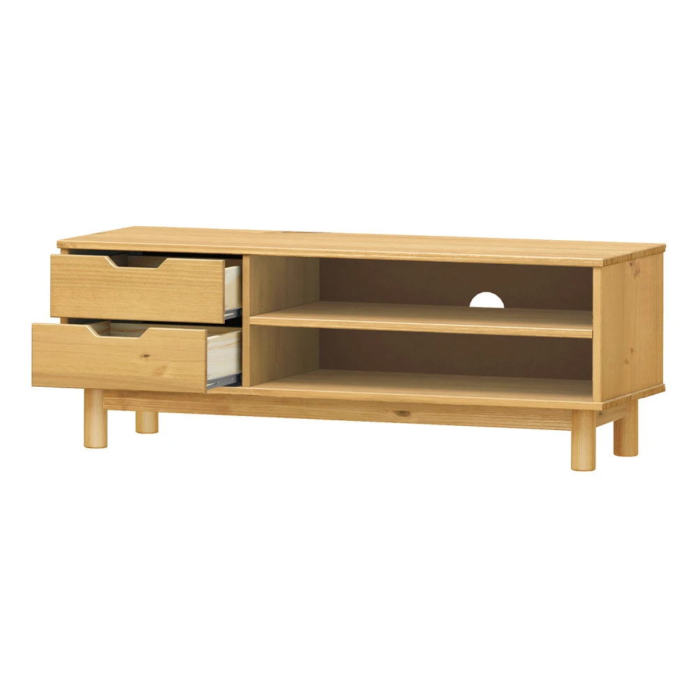 materiál masiv borovice voskovaná v medovém odstínu 2 zásuvky s kovovými pojezdy, 1 police otvor na protažení kabelů