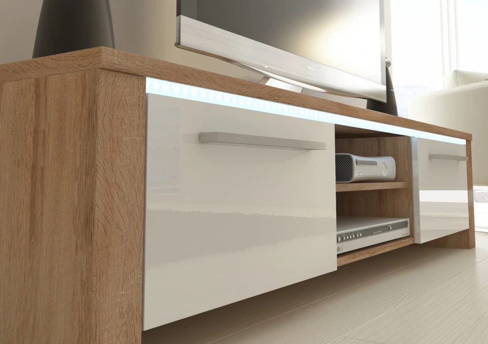 TV stolek Helix je vyroben z kvalitních LTD materiálů o síle 16 mm. Díky širokému výběru barevných odstínů skvěle zapadne snad do všech obývacích pokojů. Je vhodný především do moderních interiérů. Nábytek je v demontu.