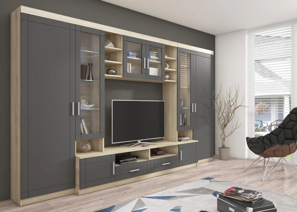 Bytová stěna Parker v moderním designu díky svému uspořádání maximálně využije veškerý dostupný prostoru. Je vyrobená z kvalitního a snadno udržovatelného lamina, prosklená dvířka dodávají sestavě lehkost. Série Parker obsahuje také komody ve více velikostech a barevných variantách, které díky univerzálnosti můžete použit v jakékoliv místnosti vašeho bytu či domu.
